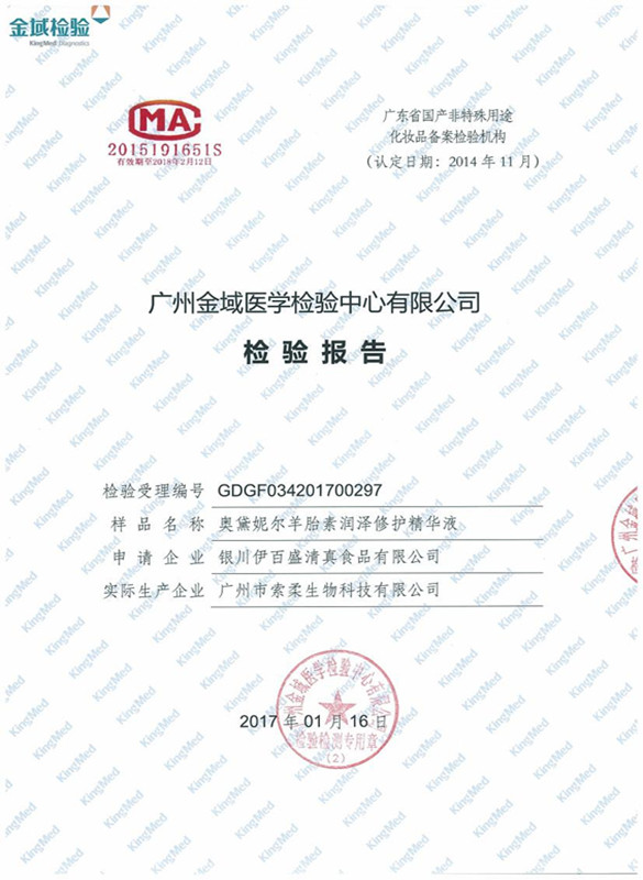 奧黛妮爾羊胎素潤(rùn)澤修護(hù)精華液檢驗(yàn)報(bào)告